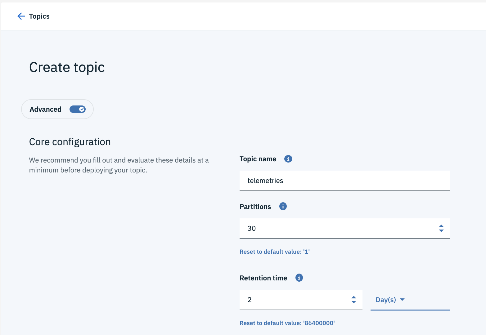 * Execute $ ibmcloud es topic-create --help for more further configuration of your topic creation