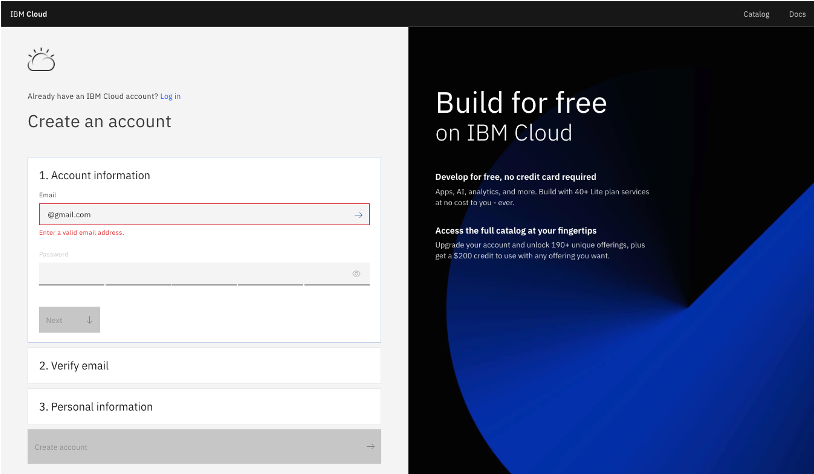 1. An IBM Cloud account. Get a IBM Cloud Account by using the register link in https://cloud.ibm.com/login Create a new account is free of charge.